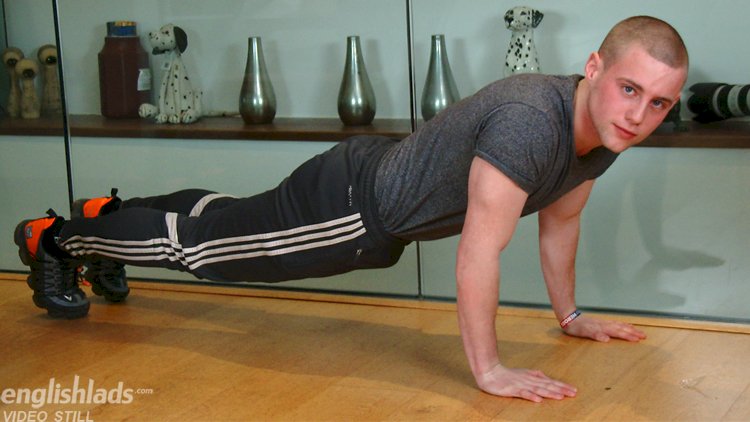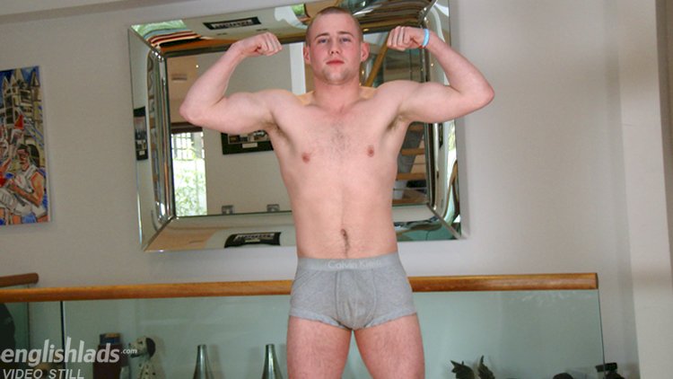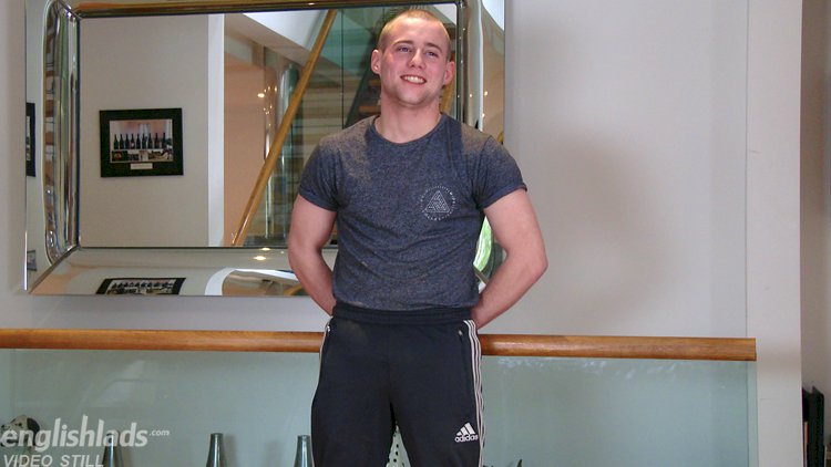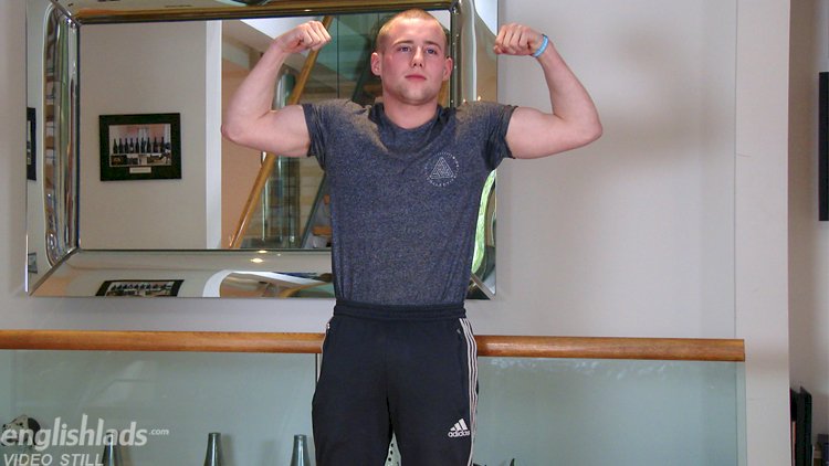 Ned Dunning is a young straight lad with a muscular, stocky build, amazing bum and big strong legs. He has nice hairy legs and slightly hairy body and hole! Ned is a natural in his first video and shows off his hot body really well. After a little work out to get himself pumped, Ned strips naked to reveal his rock-solid erection! Ned is one of those lads who once hard, stays hard and has a solid cock for the entire shoot! Ned has a lovely pair of balls and ties a cable around them to make them super tight. He shows off his peachy bum in lots of positions, including doggie before he gets comfy and shoots his load all over himself! I then follow Ned into the shower and film him wash all his cum off. Brilliant first shoot, Ned. We can’t wait to see you again!