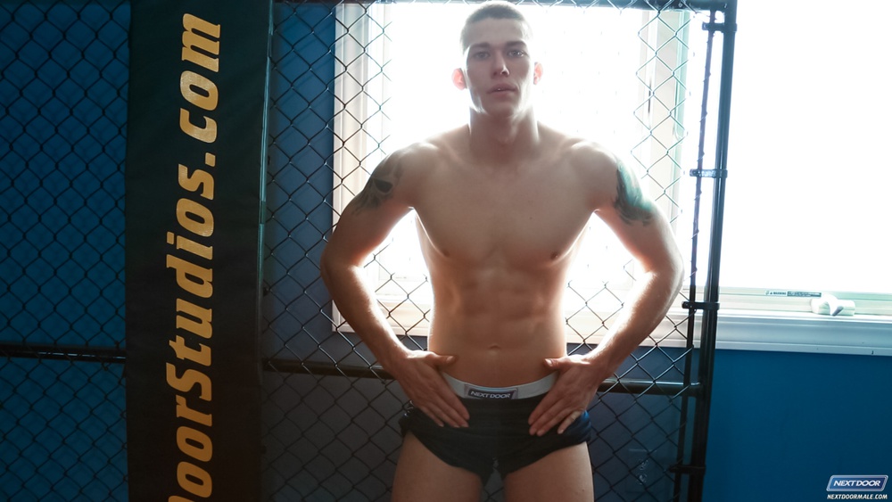 Diesel White is a serious, intense kind of guy who knows what he wants in life. Determined and hard-working, this small town kid has grown up, filling out in every direction and flexing for your enjoyment. His hulking shoulder and chest muscles show the spoils of his hard work, as we catch up with him at the end of his workout. After a nice lift and some cardio on the bag, Diesel has worked up a nice sweat, but he’s only halfway done with his routine. Leaning back against the bag, he peels off his wet shirt and strips down to his underwear, stroking his cock through his shorts. Peeling the waistband back, he reveals the shiny tip of his cock, eager and ready for some attention. Diesel grips his shaft and wags it around the room confidently, his blue eyes reflected against the sun peeking through the window. Reclining now, back against the bag, Diesel spreads his legs and works his dick frenzied and throbbing, before he unleashes his load all over the gym floor. With his workout now complete, Diesel throws his sweaty brow back against the back and exhales triumphantly.Enjoy!