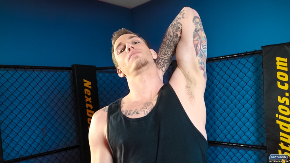 Johnny Smash is a tattooed bad boy with a B-boi upbringing. Growing up on the streets of Cincinnati, OH, Johnny began breakdancing at a young age, and learned to channel his emotions into kickboxing as a positive outlet. Here he displays both skills, hitting the back a little before breaking down and busting a little bit of a move. And it’s not just on the dance floor that Johnny has all the right moves. As he peels away gym shorts to reveal his nice cock, it becomes obvious the Johnny is eager and willing to please. He flips his dick back against his chest in a dull thud, then regrips it and begins to stroke, sitting up on a bench and arching his back as he slaps his own ass, then laying back down and spreading his legs around the bench before dousing himself with his hot sticky load. Enjoy!
