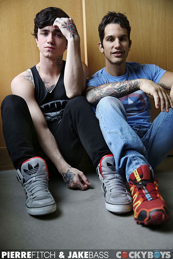 If there was ever an instance where you want to say to someone, -why don't y'all just go ahead and fuck already?!- it would be Jake Bass and Pierre Fitch! Both sons of Montreal, they have at one time or another been both friends and rivals. Both boys have big personalities (and egos) and it's safe to say Pierre and Jake have more than once crossed paths in Montreal -- even sharing the same ex-boyfriends. Over the years, they have indeed become classic frenemies. For three years now, I have seen them in many situations together -- from Pierre supporting Jake in his quest to become the next Fleshjack boy to their hilarious -wifey- scene in Project GoGo Boy. Many fans were prompted to ask why they never hooked up in PGGB. Well, we did try but it was not in the stars! In reality, both are fun together. There's never a dull moment since they really know how to push each other's buttons, at times sounding like an old married couple. And like all rivalries, it's hard not to sense a little sexual tension just below the surface! This was a pairing that I had pitched a few times, but never thought would come to be. So I was surprised when Jake came to me one day and said he felt now is the time. We prepared for this scene a little differently than the rest -- more like a boxing match between two champs. We were unsure what to expect, but I knew it would be epic and indeed it is. If Jake's cumshot is any indication, there sure was some pent up feelings!