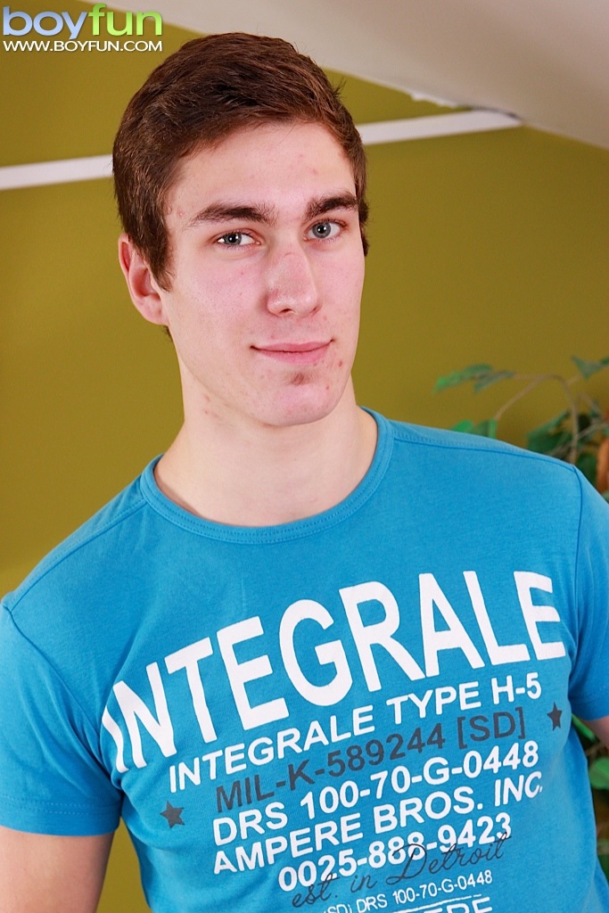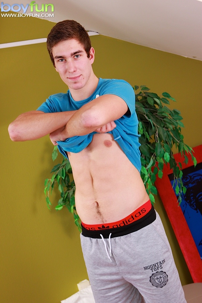 Gorgeous Patrick Hyde busts a nut onto his stomach