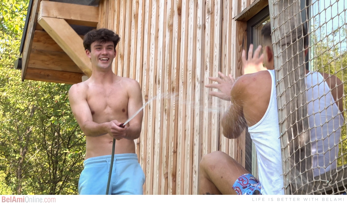 Description: It is not always work on the Frisky Summer farm. Sometimes the guys are let off to have a little fun as well. Today, it is time to highlight newcomer Armand Lemoine. Our sexy, dark-haired stud seems to be a little gullible at the beginning, but he works out pretty quickly that Bruce Harrelson is making a bit of fun and gets his own back by turning the hosepipe on Bruce and giving him a good soaking.