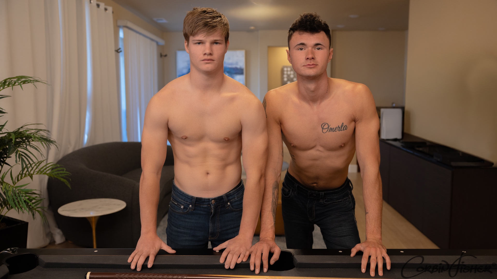 Amidst all of the super hot action here, funny enough it's a moment just after the 3 minute mark that really stood out to me and that you do not want to miss. The guys are flirting a bit and kind of dancing around what they know will eventually happen as they play some strip pool. There's sexual tension, but they've not fully broken the ice by that point until Ryan is giving Jesse this look and then moves in to kiss him. I bet many an experimentation session between two straight and curious studs has started out precisely like that countless times before, and seeing it happen between these two studs is priceless.