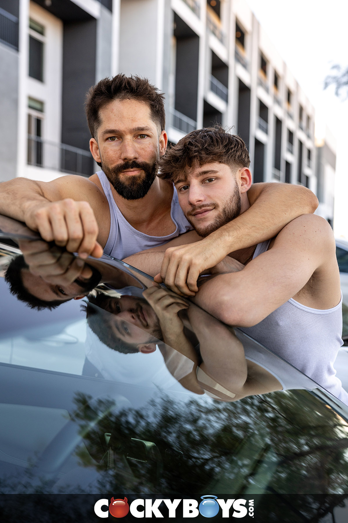 Eddie gets more affectionate, sucks Dex and plays with their cocks before Dex rides him and gets into the right position for maximum pleasure. Eddie finds some creative ways and positions to fuck Dex, including up against the mirrored wall before Dex rides him again and shoots over his chest. Then, as Eddie strokes his cock, Dex sucks his balls to a HUGE cum explosion, the result of days of waiting for this special hook-up.