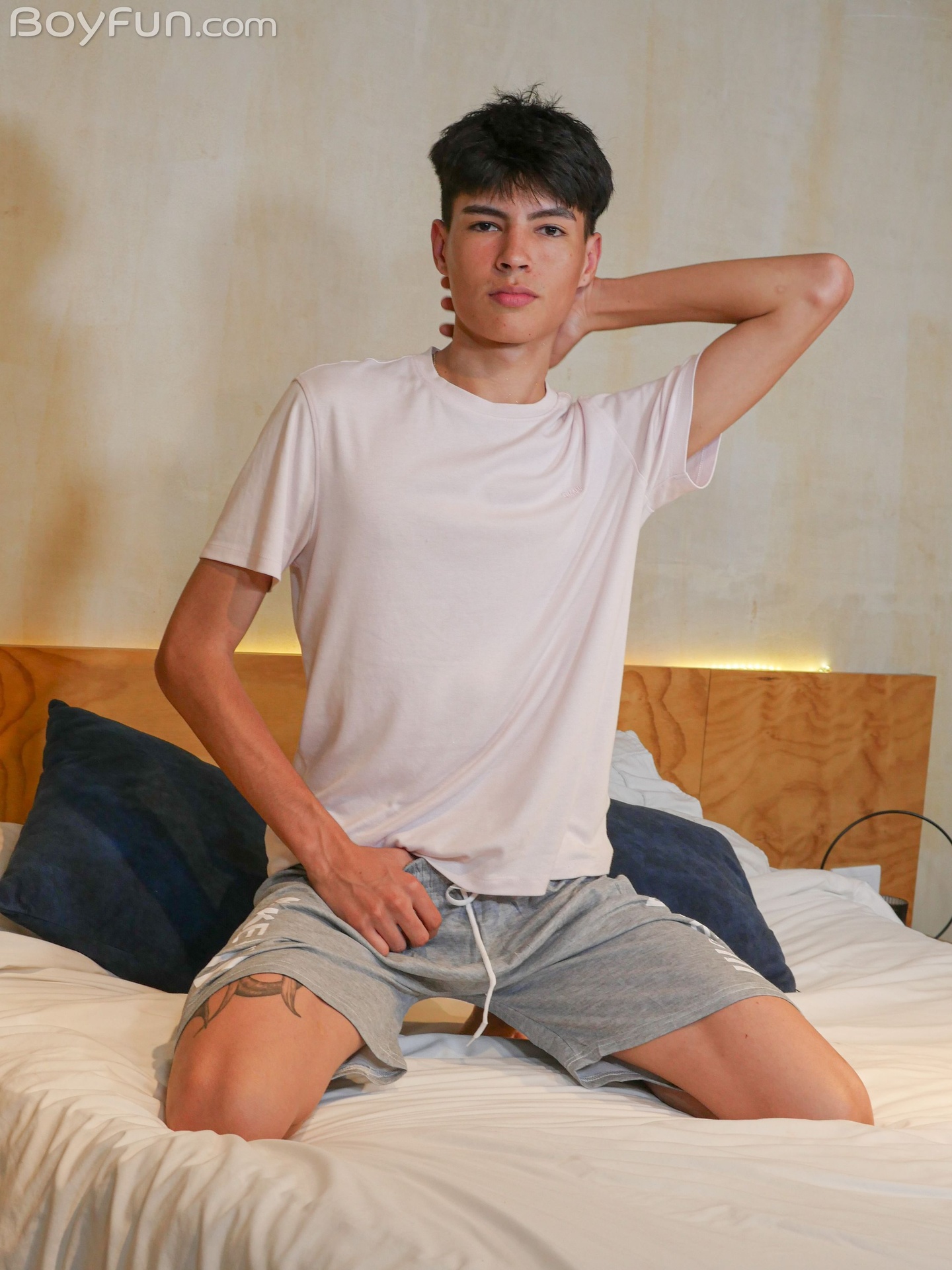 Description: Slim, smooth and sexy BoyFun twink Leo Palmer is back and he's ready to deliver a hot solo that will certainly have your juices flowing! The boy isn't wasting any time. In moments he's slipping out of his clothes and teasing us with his slight body and big bulge.