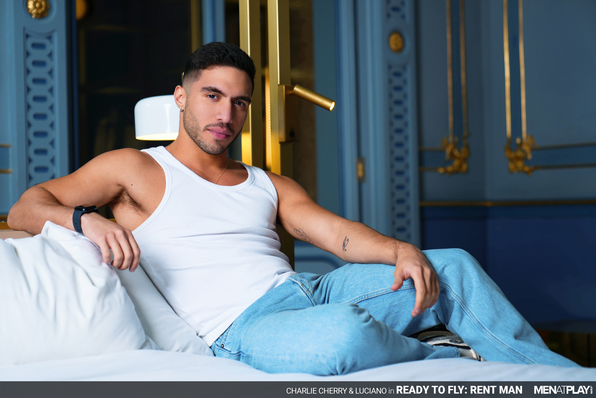In-flight Service Manager Charlie Cherry is in his hotel room on a layover, waiting for the young man he’s rented for the evening. Charlie was impressed with Luciano’s escort service reviews: 'Even hotter than you could imagine when you’re alone in bed at night… what a stud!!'