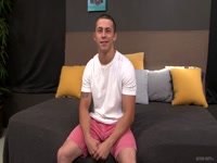 Once the introduction is finished Bradley Hayes begins to take his clothes off revealing his thick cock. He begins to rub his body and as he watches some porn his dick begins to grow and become even thicker. He jumps onto our bed and continues to stroke his meaty cock as his legs are spread. Bradley has an amazing smooth body and just about no hair anywhere on this sexy man. You can see his tight little hole as he strokes his big thick dick with his legs spread. He pulls and tugs fast on his cock as his full balls bounce around. Bradley was stroking so fast that Claude wasn't expecting him to blow a hot load so quick but luckily we got the shot. He gets back onto the bed after standing for so long stroking his thick dick. Once he's back on the bed legs spread wide and comfortable he lubes up some more and begins to tug away on his balls pulling them down as far as they can go. He jumps back up into a standing position and lets Claude get one amazing underneath shot and it shows just how smooth and sexy Bradley's hole really is. Bradley has his balls full again and this time he gives us the word that he's about to blow so we move in for the shot and he unleashes his second warm load of cum all over his smooth ripped chest. Enjoy!